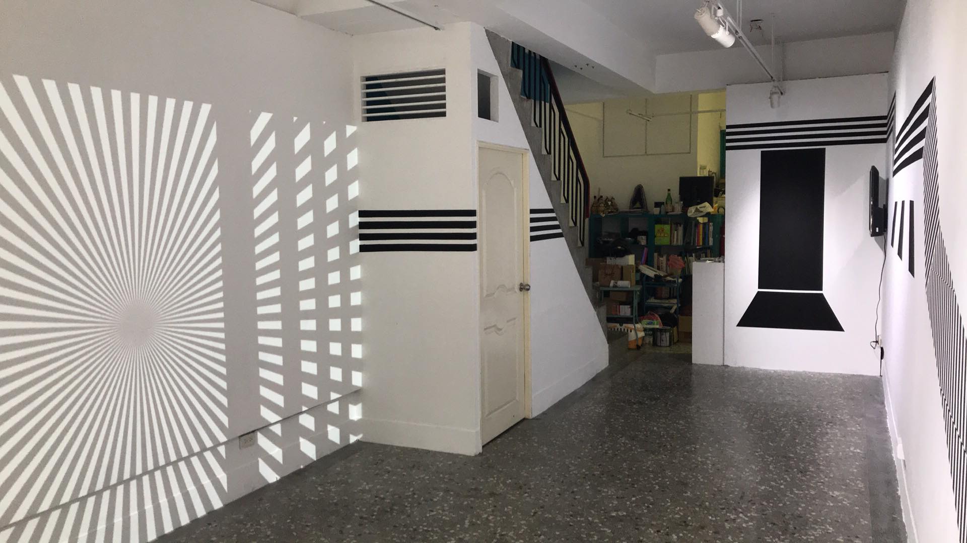 Tsa Meera in Taipei, a residency program at Waley Art combines art progresses 14 days in the countryside. OCCUR is a Solo Show held in regards to conveying my sense of play and discovery as I explore a new town that is foreign. OCCUR combines busy city everyday life, the noise surrounding my universe, creating symbols of action that follow my steps in the cities of Taiwan through the usage of Op Art and sound as multimedia displays. The patterns and videos grazed the walls of the 3-storey building that is Waley Art.